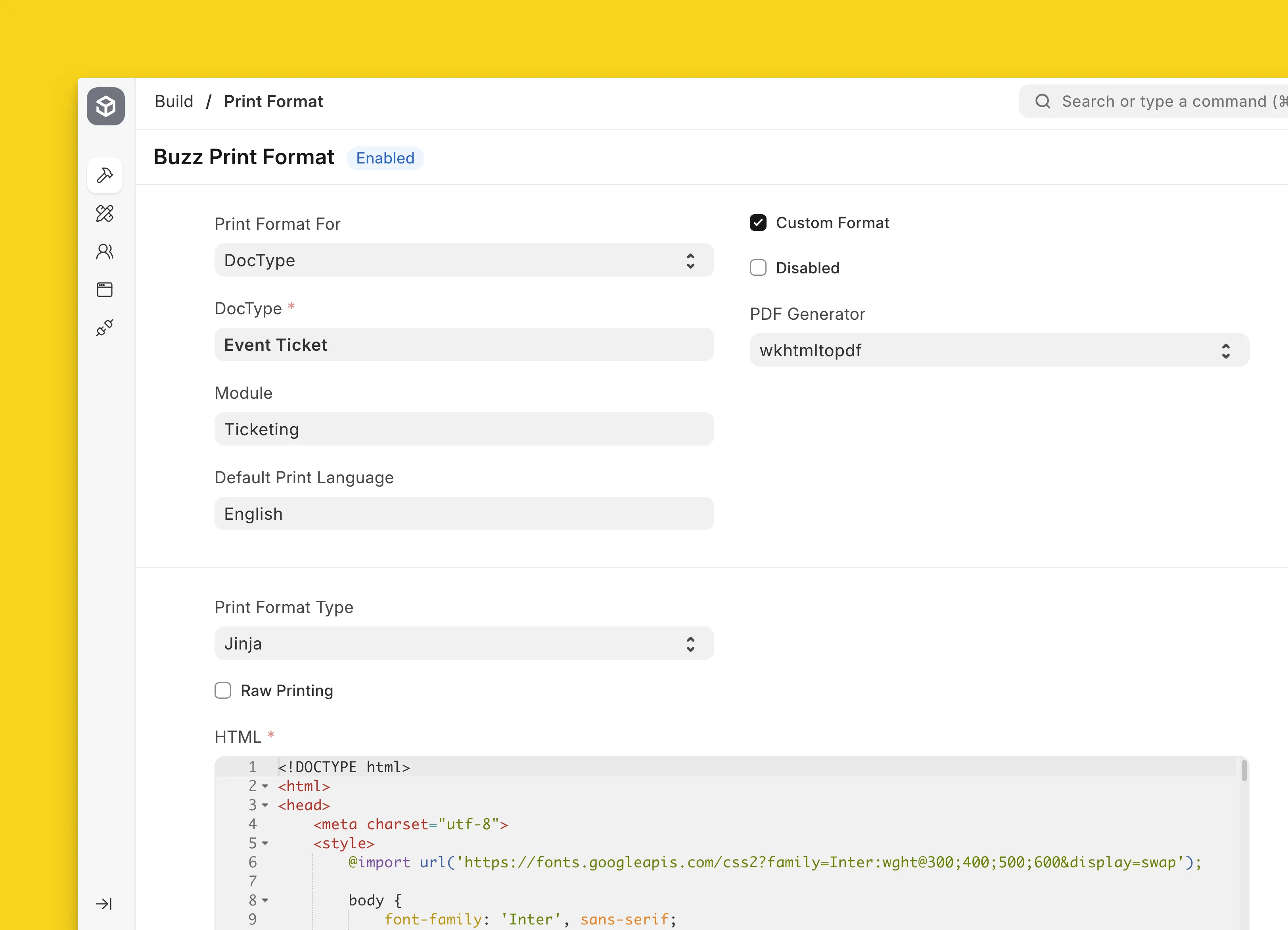 Built on Frappe Framework. Customise PDF formats, email templates, and more.